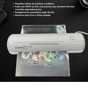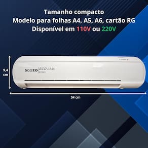 Plastificadora e Laminadora A4 Sozo 500w Compact Branco 220V A Laminadora e Plastificadora A4 Sozo 500W 220v é a solução ideal para quem busca qualidade e praticidade na hora de plastificar documentos. Com um design compacto, ela se adapta facilmente a qualquer espaço de trabalho, tornando-se uma ferramenta indispensável para escritórios, escolas e uso doméstico. Com uma velocidade de 300 mm/min e potência de 500 W, esta laminadora oferece um desempenho eficiente, permitindo que você plastifique seus documentos rapidamente. Suporta uma largura máxima de 230 mm A4 e espessura de folha plástica de até 0.5 mm 75 a 125 micra , garantindo versatilidade para diferentes tipos de projetos. O tempo de aquecimento é de apenas 3 minutos, o que significa que você pode começar a trabalhar quase imediatamente. Além disso, a direção dupla facilita o manuseio, tornando o processo ainda mais prático e ágil. Com dimensões de 6,7 cm de altura, 9 cm de largura e 34 cm de profundidade, e um peso menos de 1 kg, a Laminadora e Plastificadora A4 Sozo é leve e fácil de transportar. Invista em qualidade e eficiência para proteger seus documentos com esta laminadora de alto desempenho. Para uso como laminadora, você precisa compra um protetor térmico, nunca coloque foil ou BOPP direto que perde a do aparelho. O protetor térmico não acompanha o produto. Tem uma alavanca para tirar folha atolada. Desligamento automático do aparelho se não tiver uso em 30 minutos. Botão liga/desliga e indicador LED de ligado e pronto para uso. Marca: Não Informado Ean: 7898170369620