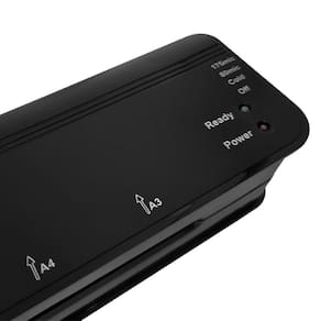 Cor: Preta Material: Poliestileno de alto impacto Capacidade de plastificação: 1 folha por vez Abertura para inserção: 330 mm Potência: 1254 Watts Espessura do polaseal compatível: 80 -125 micros Velocidade de plastificação: 530 mm/minuto Tempo de aquecimento: Menos de 4 minutos Tamanho de documento: Cartão Pessoal à A3 Cabo de alimentação de 1,1 m 2 Roletes Plastificação quente/frio