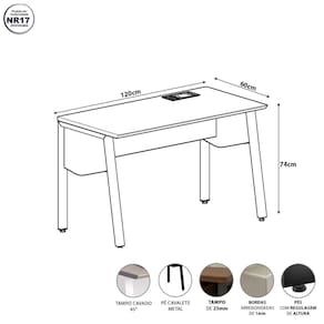 Produto dentro das normas para escritório, pois possui as bordas com os cantos arredondados (NR 17)