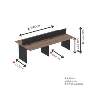Plataforma Dupla Pé Painel 4p 2400x1200 Preto/walnut Plataforma Dupla Pé Painel 4P 2400x1200 Preto/Walnut - A Mesa Plataforma Dupla Para 4 Pessoas 240x120cm é perfeita para otimizar espaços de trabalho colaborativos com conforto e organização. Com design moderno e estrutura robusta em pé painel, ela proporciona estabilidade e durabilidade para o uso diário em escritórios, coworkings ou home office.