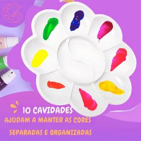 Descubra a praticidade da Plate Plástica para Pintura em formato de flor com 10 cavidades, ideal para artistas e entusiastas da pintura. Seu design exclusivo permite organizar até 10 cores diferentes simultaneamente, facilitando a mistura e aplicação das tintas sem sujeira ou desperdício. Feita de plástico resistente, é leve, durável e fácil de limpar, perfeita para uso em estúdios, escolas e oficinas de arte.