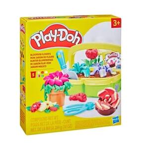 A caixa de jardim e os discos de flor podem fazer quatro formatos diferentes de flores de Play-Doh e o molde-livro cria mais duas variedades.