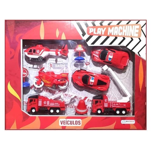 Play Machine Playset Veículos Bombeiro - Multikids Informações do Produto: Play Machine Multikids, viva a experiência de ter uma equipe de bombeiros completa para você. Brinque de fazer resgastes e apague incêndios, basta usar a sua imaginação para a sua brincadeira se tornar a mais divertida. Itens Inclusos: - 01 Caminhão de Bombeiro Guincho - 01 Caminhão De Bombeiro Com Escada - 01 Helicóptero - 02 Carros - 01 Moto - 01 Cone - 02 Placas De Sinalização Dimensões aproximadas: 5 x 35 x 45 cm Recomendado: Não recomendável para menores de 3 anos. Alimentação: Não. Material composição: plástico. Certificação Segurança: Selo Inmetro. Garantia do Fabricante: 03 meses contra defeitos de fabricação. Aviso: Imagens meramente ilustrativas. As cores podem variar entre as imagens mostradas acima e o produto.