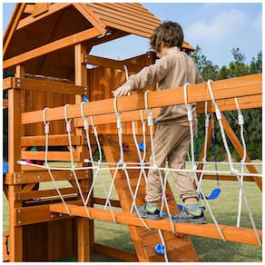 Exercício Físico: A barra de macaco, a parede de escalada de 1,5 m e a ponte com rede de corda ajudam a melhorar a aptidão física das crianças, aprimorando habilidades motoras, flexibilidade e força. Excelente para crianças que adoram escalar, balançar e aventuras ao ar livre.