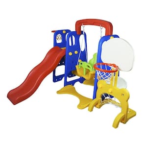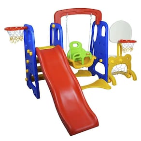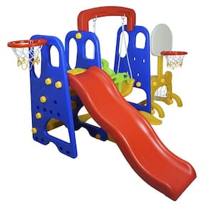 Playground Infantil 5 em 1, com balanço com barra de proteção para os pequenos, escorregador, duas cestas de basquete e gol. São cinco atividades para divertir as crianças e estimular a interação entre elas. Recomendado para crianças a partir de 3 anos. Suporta até 30 kg.
