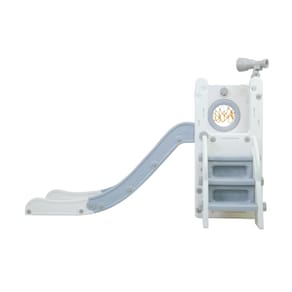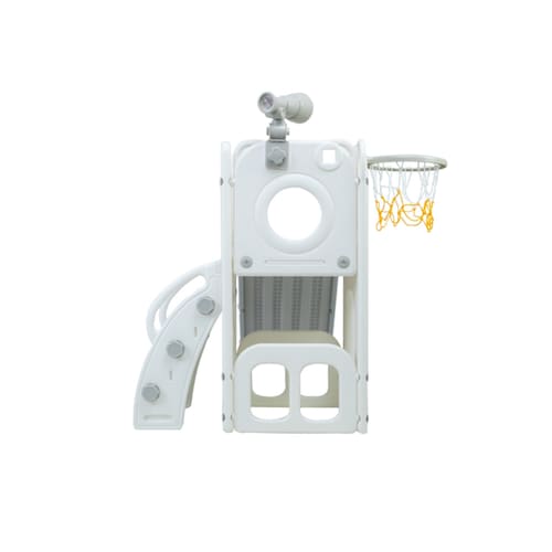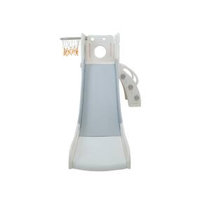 Com 1 torre que inclui escorregador, cesta de basquete, luneta e guarda-brinquedos.