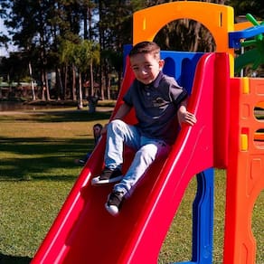 O painel interativo estimula o faz-de-conta e a imaginação, tornando a brincadeira mais envolvente. O escorregador possui formato anatômico, permitindo descidas suaves e confortáveis.