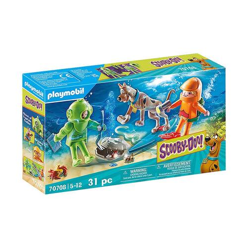 Você pode tirar a máscara do fantasma! Scooby-Doo na prancha e Fred com roupas de mergulho que você pode colecionar. Histórias sobre o espírito do Capitão Cutler levam Scooby-Doo e Fred para o fundo do mar. Fred tem equipamento especial de mergulho e Scooby segue o espírito flutuante em sua prancha de surfe. Ele está tentando obter suas joias escondidas. Juntos, Scooby e Fred irão capturar o fantasma para revelar seu segredo. Pode-se tirar a máscara da figura e revelar a verdadeira identidade do mergulhador. O conjunto inclui Scooby-Doo, Fred, o fantasma do Capitão Cutler, uma carta fantasma, uma prancha de surf, um tesouro, equipamento de mergulho e outros acessórios.
