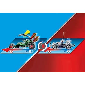 É hora de uma emocionante perseguição de carro com o Police Go-Kart Escape!Ambos os veículos estão equipados com um motor de recuo para dar vida à açãoO conjunto inclui duas figuras, quad policial, kart, cofre com dinheiro e barras de ouro, espigões de estrada e outros acessóriosRecomendado para idades de quatro a dez anos. Aviso. Perigo de asfixia. Peças pequenas. Não para crianças menores de 3 anos
