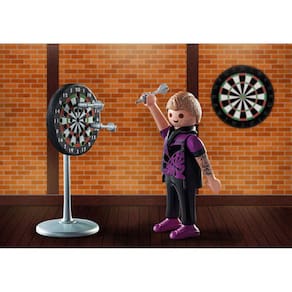 Descrição: "- Dardos não é apenas um passatempo popular no pub, mas também um esporte exigente. - O jogador de dardos treina diariamente para melhorar sua habilidade e concentração. Com habilidade, ele joga os dardos no alvo. Todos acertaram! Ele obteve uma pontuação perfeita! - O conjunto de brinquedos inclui uma figura Playmobil, um alvo de dardos e três dardos. - Os dardos podem ser segurados pela figura na mão e fixados em 31 posições diferentes do alvo. - As adoráveis figuras de brincar podem ser usadas sozinhas ou combinadas com outras gamas da Playmobil.- Recomendado para maiores de 4 anos." Características: Marca: Sunny Brinquedos Referência: 3722 Idade recomendada: A partir de 4 anos Pilhas Inclusas? Tipo de Pilha/Bateria Não necessita de pilhas Possui Luzes: Não Possui Sons: Não Dimensões aproximadas da embalagem: 13,3 x 9,5 x 3,7cm (A x L x C) Garantia: 3 meses a contar da emissão da procedência garantida Embalagem: Conteúdo da embalagem: 1 jogador de dardos, 1 alvo de dardos, 3 dardos Produtos de decoração não inclusos. Imagens meramente ilustrativas. As cores dos objetos podem sofrer alterações devido a luminosidade, configurações do monitor e até mesmo a percepção do usuário.