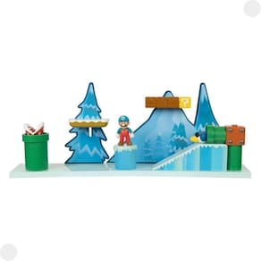 Conheça os novos playsets de Super Mario. Cada Playset contém bonecos e acessórios exclusivos, inspirados em fases dos jogos. Neste Playset Deluxe, reviva as aventuras que Mario passou na Geleira. Inclui um boneco do Mario de Gelo e 5 peças de ambiente com mecanismos. Mude o cenário com a plataforma intercambiável com lançador, Planta Piranha e Pilar de Gelo.