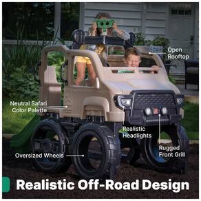 Brincadeira Divertida: Transforme seu quintal em um cenário de aventuras selvagens! As crianças podem "dirigir" usando o volante enquanto exploram com os binóculos para encontrar "animais", estimulando a criatividade e o espírito aventureiro.