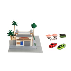 Jada Toys – Fast & Furious Nanoscene: Toretto's Market & Cafe com 2 Nano Veículos – Réplica de filme altamente detalhada, cena colecionável para maiores de 8 anos