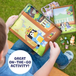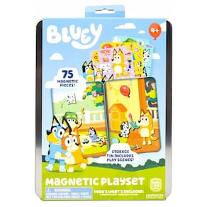 Conjunto magnético Bluey, brinquedos de atividades magnéticas, ótimas festas de aniversário, atividades em casa ou diversão sem tela, viagem perfeita ou viagem, horas de diversão para crianças de 3, - 75 acessórios magnéticos azuis: Completo com 75 personagens magnéticos perfurados e acessórios, este conjunto peculiar oferece infinitas maneiras para o seu filhote aprender brincando! Misture e combine toneladas de diferentes brinquedos, roupas e acessórios magnéticos para contar sua própria história Bluey. - TODOS OS SEUS PERSONAGENS BLUEY FAVORITOS: Retire seu elenco favorito de personagens da folha magnética, incluindo Grandad, Nana, Bandit, Chilli, Bluey, Bingo, Muffin, e coloque-os dentro da lata para criar suas próprias aventuras! - Estojo de armazenamento premium + espaço para brincar: use a lata de armazenamento para manter seus ímãs organizados (não deixe um filhote no frio!) e traga um mundo de aventuras criativas onde quer que você vá, incluindo encontros, festas do pijama, viagens rodoviárias e muito mais! - APRENDA ATRAVÉS DO JOGO: O conjunto magnético Bluey é perfeito para inspirar o pensamento imaginativo, incentivar a contar histórias, desenvolver a consciência espacial, praticar habilidades motoras finas e, acima de tudo, se divertir! - O CONJUNTO INCLUI: 1 recipiente de armazenamento de lata (24 cm. x 4 cm. x 16,5 cm. ), 1 folha perfuradora magnética, instruções fáceis de seguir