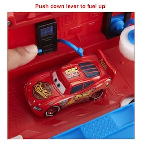 Playset Mattel Disney e Pixar Cars Transforming Mack, caminhão de brinquedo 2 em 1 e estação de ajuste com lançador, elevador e muito mais