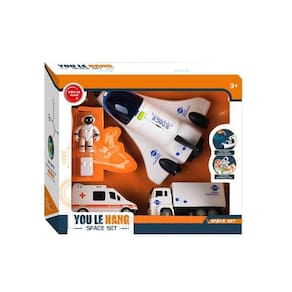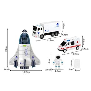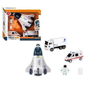 Agora você pode ir à Lua ou visitar Planetas distantes com o Ônibus Espacial, um Astronauta, uma ambulância para os primeiros socorros do Astronauta em sua aventura, e um caminhão para a exploração de suas descobertas.