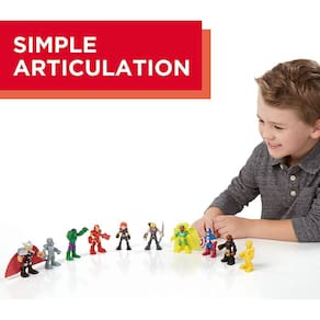 Os pré-escolares podem imaginar salvar o dia ao lado dos Vingadores com este conjunto de brinquedos, apresentando alguns dos personagens mais icônicos da Marvel! Os brinquedos colecionáveis Playskool Heroes Marvel Super Hero Adventures permitem que crianças de 3 anos e até recriem cenas de ação favoritas do filme Vingadores: Era de Ultron. A diversão não termina aí, porém, como meninos e meninas podem imaginar suas próprias aventuras! O Capitão América, Homem de Ferro, Thor, Hulk, Viúva Negra da Marvel, e outras figuras incluídas proporcionam grande diversão, mas são dimensionadas para mãos pequenas. Com uma simples articulação, cada figura pode ser colocada para se encaixar em qualquer missão que as crianças possam imaginar. Brincar com o Ultimate Super Hero Set pode levar fingimento para salvar o dia com os Vingadores a um nível épico, e com 10 figuras de ação de 2,5 polegadas, as crianças podem começar uma coleção, adicionar a um ou trocar com amigos! Direitos autorais MARVEL. Todas as marcas comerciais e marcas registradas são de propriedade de seus respectivos proprietários. Playskool e todos os termos relacionados são marcas comerciais da Hasbro.