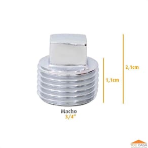 Plug Bujão Tampão Latão Cromado Rosca Macho 3/4"