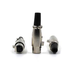 Plug Canon Fêmea 3 Polos 20 Unidades Conector para cabo, linha XLR fêmea de 3 polos para cabos de áudio de três condutores. Conector: XLR Composição do Produto: Metal niquelado e Borracha. Dimensões do Produto: 2,5 comprimento x 7 altura x 2,5 largura Marca: Não Informado