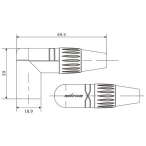 Plug XLR Macho 90º Metal Profissional 3 Vias Roxtone RX3RMP-NT
