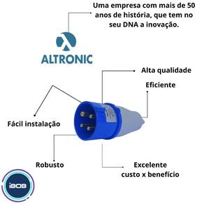 A ibob vendas online tem a missão de garantir a satisfação total do seu cliente, tanto nos produtos quanto no atendimento, estabelecendo assim uma relação de confiança plugue 3p + t 16a 220/250v azul 9h ip44 Quer plugues robustos e resistentes que garantem máxima segurança na sua instalação Então você precisa do nosso plugue 3p + t 16a 220/250v azul da altronic. Os plugues industriais oferecem praticidade, flexibilidade e segurança, nas conexões elétricas temporárias que requerem elevadas correntes elétricas. A nossa linha de plugues da altronic conta com uma gama completa de produtos que atendem os mais diversos ambientes e aplicações, tanto para a indústria quanto para instalações comerciais. Características gerais: - marca: altronic; - cor do produto: azul; - peso: 0,112g; - altura: 14,0 cm; - largura: 5,0 cm; - profundidade: 5,0 cm; - pinos: 4 3p+t ; - corrente nominal: 16a; - tensão nominal: 220/250v; - posição de contato terra: 9h; - grau de proteção: ip44. : Tenha tranquilidade de comprar com quem está disposto a te oferecer o melhor atendimento. Caso precise de ajuda após a compra, conte com o nosso time de especialistas para lhe auxiliar. Estamos sempre à disposição para tirar qualquer dúvida. Marca: Não Informado