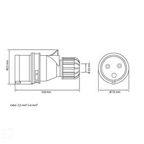 O Plugue Móvel Industrial 2P+T 32 A 220-250 Vca 6 H Tramontina é a escolha certa para as instalações elétricas de pavilhões e indústrias. Ele possui confecção em termoplástico auto extinguível, material isolante e de alta resistência mecânica. Ele é muito fácil de instalar, pois conta com sistema de desmontagem simples: você só precisa liberar a trava com o auxílio de uma chave de fenda e girar para desmontar. E o melhor, o presa-cabo integrado é muito fácil de ajustar e dispensa o uso de ferramentas, o que garante melhor fixação do cabo e vedação. Os melhores produtos para seus projetos, você só encontra com Tramontina! Orientações Atende a norma IEC 60309.Intercambiável com outros produtos desenvolvidos em conformidade com a norma IEC 60309. Possui grau de proteção IP44.Temperatura de utilização -25 °C a 40 °C. Características Gerais EAN13 7891435942699 DUN14 17891435942696 NCM 8536.69.10 Peso Líquido 0,1800 kg. Peso Bruto 0,2000 kg. Metragem 0,000499 m³. Dimensões Embalagem (Compr. X Larg. X Alt.) 165x 55x 55 mm. Dimensões Produto (Compr. X Larg. X Alt.) 160x 55x 55 mm. Observações É importante que seja instalado por profissional habilitado. Antes de instalar, desligue a energia elétrica.