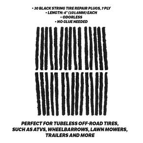 Slime Pacote de plugue de reparo de pneu 1031-A, cordas resistentes padrão, para pneus off-road sem câmara, como quadriciclos, carrinhos de mão, cortadores de grama, trailers, pacote com 30