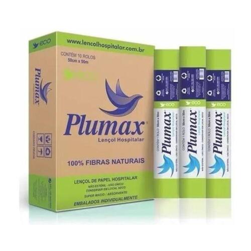 PAPEL LENÇOL 70 CM X 50 METROS 100% Fibras Naturais C/10 ROLOS PLUMAXLençol Hospitalar 100% Fibras Naturais - CAIXA COM 10 ROLOSRegistro Anvisa: 80597120005Lençol Hospitalar 100% Fibras Naturais.Papel lençol Plumax, produzido com papel 100% Fibras Naturais. Rolos embalados individualmente e identificados com data de fabricação, lote e validade do produto.Dimensão: 70cm x 50m.Papel lençol plumax, produzido com papel 100% Fibras Naturais.Rolos embalados individualmente e identificados com data de fabricação, lote e validade do produto.Os produtos plumax são produzidos com papel 100% Fibras Naturais retirados de florestas plantadas exclusivamente para fins industriais, contribuindo com o meio ambiente e oferecendo aos seus clientes produtos de altíssima qualidade.