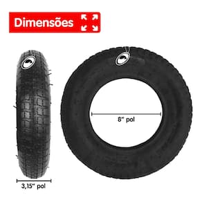 ESPECIFICAÇÕES TÉCNICAS: - Medida: 3.25 x 8 polegadas; - Tipo: Para uso com câmara de ar; - Construção: 2 lonas; - Aplicação: Carrinhos de mão; - Material: Borracha reforçada.