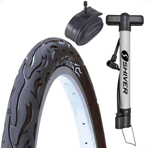 1 unidade - Pneu kenda Flame aro 26x2.125 1 unidade - Camara de ar aro 26 Shiver Bico grosso 33mm 1 unidade - bomba de ar Shiver aluminio 30cm