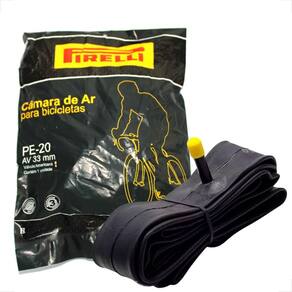 Especificação camara: - Marca Pirelli - Câmara aro 20 MTB - Borracha Butyl - Emenda invisível - Mais Elasticidade - Espessura Uniforme - Válvula Schrader 33mm (Bico Grosso) - Válvula Americana - Maior resistência a impacto - Aderência a remendos à quente ou frio