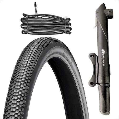 ITENS INCLUSOS: 1 UNIDADE pneu Levorin Eruption aro 29x2.30 1 UNIDADE camara de ar Shiver 29 bico fino 48mm 1 unidade mini bomba de ar manual Shiver quadro