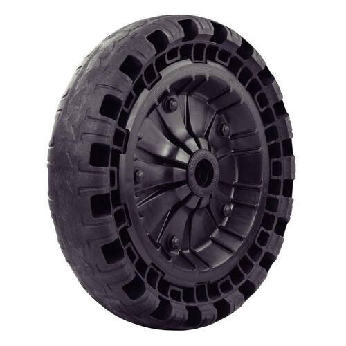 - Pneu maciço 320 x 75 mm, fabricado em termoplástico flexível e resistente, sendo 100% reciclado e reciclável.- Pneu flexível: absorve impacto e não fura.- Eixo universal: 1, 3/4 e 1/2.- Carga máxima de 100 kg.- Utilizado em qualquer modelo de carrinho de mão.