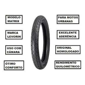 Tamanho: 100/90-18 Tipo de montagem: Com câmara Posição: Traseira Quantidade de pneus: 1 Marca: Levorin Modelo: Matrix Origem: Brasil Índice de carga: 56 = 224 Kg Diâmetro da roda: 18 "