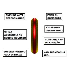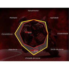Novo perfil de frente com curvatura reduzida nos ombros para maior área de contato na inclinação total com resposta leve do guidão ao comando do piloto e resposta suave enquanto faz a curva, para uma resposta de pilotagem melhorada