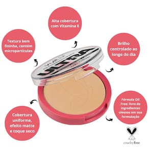 -cobertura média a alta. -efeito natural. -fórmula Oil Free: livre de ingredientes oleosos em sua formulação. -com Vitamina E. -aumenta a durabilidade da maquiagem. -vegano. -livre de parabenos. -brilho controlado ao longo do dia. -dermatologicamente testado.