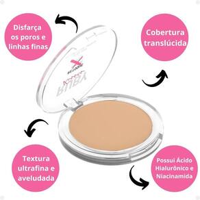 Pó Finalizador Compacto Ultra Blur Retoque Nunca Mais O Ultra Blur Pó Finalizador Compacto da linha de Retoque Nunca Mais, possui tecnologia ultra blur que disfarça os poros e linhas finas, deixando um efeito instantaneamente. Com textura ultrafina e aveludada e coberta translúcida. Possui Ácido Hialurônico que ajuda a hidratar e previnir o envelhecimento precoce da pele e Niacinamida que ajuda a uniformizar e controlar a oleosidade da pele. Fórmula vegana e não testada em animais. . Modo de Uso Com o auxílio de um pincel ou esponja puff, aplique o pó sobre todo o rosto. Utilize-o sozinho para finalizar a maquiagem ou antes do pó solto para uma maquiagem ainda mais. . Composição Talc, Mica, Polymethyl Methacrylate, Silica, Nylon-12, Magnesium Myristate, Dimethicone, Boron Nitride, Vinyl Dimethicone/Methicone Silsesquioxane Crosspolymer, Ethylhexyl Palmitate, Tocopheryl Acetate, Phenoxyethanol, Triethoxycaprylylsilane, Lauroyl Lysine, Methicone, Caprylyl Glycol, Niacinamide, Sodium Hyaluronate, CI 77492, CI 77491, CI 77499. . Código de Registro Sanitário ANVISA 25351.223051/2024-34 . O pó ajuda a hidratar a pele Sim, o pó contém Ácido Hialurônico, que auxilia na hidratação da pele e previne o envelhecimento precoce. Posso usar o pó sozinho ou ele precisa de base Você pode usar o Pó Finalizador Compacto Ultra Blur sozinho para um acabamento natural ou aplicá-lo após a base e corretivo para garantir um acabamento mais refinado. O pó é compatível com todos os tipos de pele Sim, o pó é adequado para todos os tipos de pele, incluindo peles oleosas e secas. Sua textura ultrafina ajuda a deixar a pele com aparência uniforme e sem pesar. O efeito blur funciona imediatamente Sim, ao aplicar o pó, você notará um efeito imediato de disfarce dos poros e linhas finas, proporcionando um acabamento suave e aveludado. Posso usar o pó durante o dia para retoques Sim, o Ultra Blur Pó Finalizador é perfeito para retoques ao longo do dia, garantindo que seu look se mantenha intacto e sem brilho excessivo. O pó tem cor ou é translúcido O Pó Finalizador Ultra Blur possui cobertura translúcida, garantindo que ele se adapte a diferentes tons de pele sem alterar a cor da maquiagem.