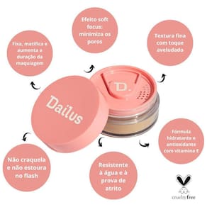 - fixa, matifica e aumenta a duração da maquiagem. - efeito soft focus: minimiza os poros. - textura fina com toque aveludado. - fórmula hidratante e antioxidante com vitamina e. - resistente à água. - à prova de atrito. - não estoura no flash. - não craquela. - hipoalergênico. - testado dermatologicamente. - livre de parabenos. - vegano e cruelty-free.