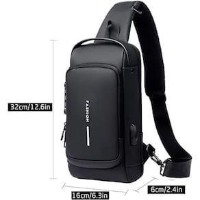 Esta é uma descrição de uma mochila de ombro masculina que possui uma trava à prova d'água antirroubo e um porta de carregamento USB. A mochila é projetada para ser usada como uma bolsa tiracolo, permitindo que o usuário carregue seus pertences de forma segura e conveniente.