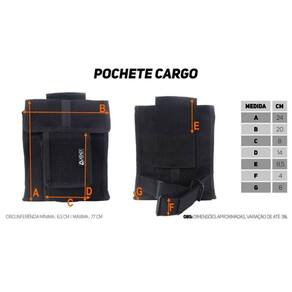 A pochete Cargo é perfeita para o transporte de acessórios maiores, visto que o compartimento principal não possui divisões. Com fechamento através de fecho de contato, o acesso aos equipamentos se torna prático e rápido. Produzida em tecido duratran, a pochete cargo disponibiliza ao usuário grande capacidade de carga se comparada a pochetes tradicionais e considerando que a sua fixação é através de um passador de cinto costurado diretamente na peça.
