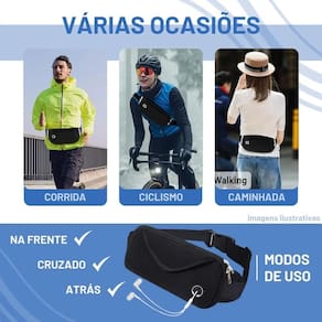 Pochete esportiva modelo slim. A pochete fitness foi criada para que você tenha um maior conforto e segurança em suas caminhas, corridas treinos na academia ou até mesmo andar na rua. Ela carrega os seus objetos com total conforto e segurança. 100 % funcional. A pochete esportiva é uma bolsa ideal para guardar seus pertences próximo ao seu corpo como celular, chaves, entre outros. A pochete porta dólar possui 2 bolsos com zíper de material resistente 100% náilon com saída para fone de ouvido e ainda possui tela na parte de trás para segurar o suor e deixar mais confortável com alça ajustável para cintura. A pochete é unissex, pochete feminina, pochete masculina possui um cinto em elástico que se adapta a qualquer tamanho de cintura, possui tela na parte de trás superconfortável e discreta, não aparece por baixo das roupas. A pochete é ideal para passear fica discreta por debaixo da roupa assim fica com as mãos livres você pode guardar dinheiro, celular, cartão, chave e passaporte protegendo de maneira segura e confortável seus pertences. O design ergonômico com material leve tecido macio e alça firme e confortável, possui várias core para combinar com seu look de treino. Marca do produto é enviada conforme disponibilidade: Marcas: h'maston lukton kts b max/ecoda Produto não recomendado pra mergulho. Produto na cor: preto do vendedor: 15 dias