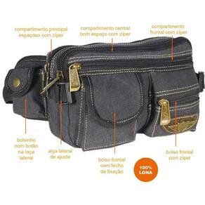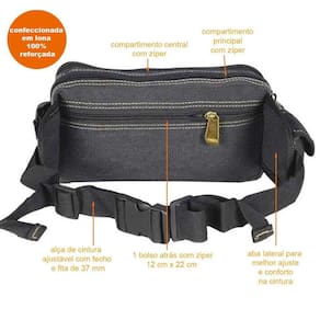 Dúvidas frequentes: - Qual o material da pochete? A pochete é feita de lona 100% reforçada, garantindo resistência e durabilidade.
