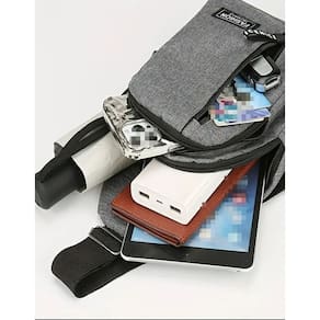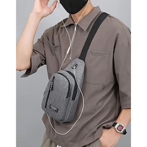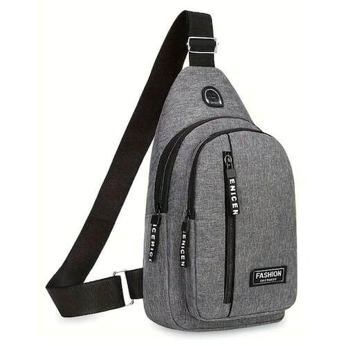 Pochete masculina transversal de ombro, durável, com compartimentos internos e bolsos externos e alça ajustável.