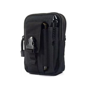 Bolsa cintura militar para celulares, costura toda preta Fabricado em ripstop, de alta intensidade e durável. Pode ser ligado a mochila, cinto comum ou cinto Tem vários compartimentos internos com grande capacidade Pode carregar celulares, canetas, , carteiras, itens de acampamento, power bank, pen drive, alimento, remédio, itens de primeiro socorros, canivetes, itens de , material de escritório, itens militares, etc. Ótimo para seu dia a dia, esportes táticos, tênis para caminhada, escalada, uso de forças policiais, bombeiros e etc. Contém 1 bolso para celular externo 1 bolso para caneta externo 2 bolsos com zíper com divisórias internas 1 gancho para pendurar molho de chaves Tipo padrão: sólido Cor: preto Tamanho Altura em pé 17 cm, Largura 12 cm Espessura 2,5 cm vazio e cheio até 6 cm Porta celular 8 de largura e regulável até 17 cm de altura Peso: aprox. 150g