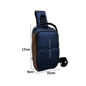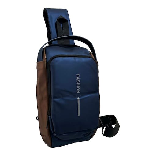 Pochete Mochila Shoulder Bag Ombro Transversal Impermeável Azul com Marrom - Marrom - P + P