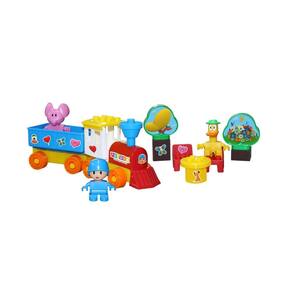 Conjunto completo com trem, blocos e personagens do desenho Pocoyo.