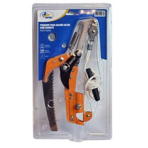 Podador cortador de galhos altos com serrote profissional guepar - marca: guepar - referência: 861-49389 - ideal para cortar e podar galhos altos de maneira prática e eficaz. - cordão de acionamento: 2,5m - corte 45 - capacidade de corte: 30mm - não acompanha o cabo - com o serrote é possível efetuar a poda de galhos de diâmetros maiores, facilmente, garantindo um corte limpo e sem rebarbas - para galhos menores, ainda é possível utilizar o podador, garantindo agilidade durante a tarefa - você pode acoplar esta ferramenta em cabos extensores e, assim, cortar galhos em locais de difícil acesso - lâmina em aço carbono flexível e de alta durabilidade - elevado grau de afiação dos dentes: confere precisão de corte e dispensa retoques periódicos - podador de galhos altos com serrote - tesoura conjugada, prática e eficiente - peso bruto: 900 gramas - : 90 dias Marca: Não Informado
