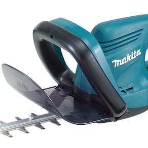 Produto: Podador de cerca viva 550 watts com sabre de 18" - UH4570 Marca: Makita Voltagem: 220VDescrição: O Podador de cerca viva 550 watts com sabre de 18" UH4570 da Makita possui operação confortável com punho emborrachado de design ergonômico, três interruptores instalados nos punhos principal, frontal e inferior. Além disso, a ferramenta liga somente pressionando dois interruptores ao mesmo tempo. Conta com protetor na ponta da lâmina para prevenir o contragolpe e lâminas com banho exclusivo para melhorar a durabilidade. Sua potência é de 550 watts com 450mm de comprimento da lâmina. Efetua 1.600 golpes por minuto. Características: • Potência e Eficiência: Equipado com um motor de 550 watts e um sabre de 18", este podador alcança até 1.600 golpes por minuto, proporcionando cortes rápidos e limpos;• Conforto no Manuseio: Conta com um punho emborrachado de design ergonômico, garantindo um uso confortável e seguro. Três interruptores instalados nos punhos principal, frontal e inferior permitem que a ferramenta funcione somente ao pressionar dois deles simultaneamente, evitando acidentes;• Segurança Avançada: Para maior proteção, vem com um protetor na ponta da lâmina que previne o contragolpe, além de lâminas com um tratamento exclusivo que aumenta sua durabilidade.Especificações: Potencia: 550 wattsComprimento da lâmina : 450 mmGolpes por minuto: 1.600 rpm.Itens Inclusos: Cobertura da lâminaConjunto de ganchosConjunto completo de prendedor de cabo. Marca: Não Informado