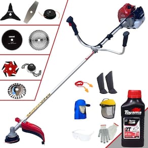 Roçadeira À Gasolina Kawashima BCJ 521L 52CC 2,5HP 2T + Faca 3 Pontas + Faca 40 Dentes + Faca 80 Dentes + Escova Rotativa 24 cerdas + Trimmer + Faca 6 Pontas + Óleo Toyama FG50 500ml + Kit EPI Completo
