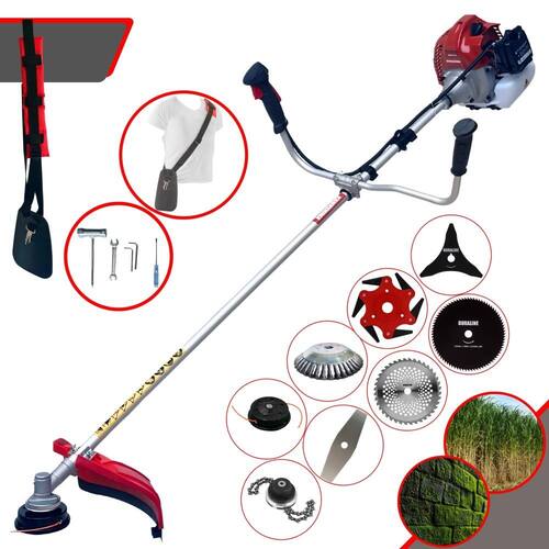 Com guidão ergonômico lateral, permite um alcance amplo e maior mobilidade, capaz de aumentar a produtividade diária. Possui motor 2 tempos á gasolina, de 43 Cilindradas; 1,7HP de potência que proporcionam maior performance e economia na operação. Seu conjunto de acessórios inclui kit de ferramentas, cinto de suporte almofadado, carretel de nylon e lâmina de corte 3 pontas.